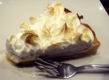 El pie de limón es un postre tradicional estadounidense. Consiste en una masa crujiente, cubierta por una capa de crema de limón y como decoración una capa de